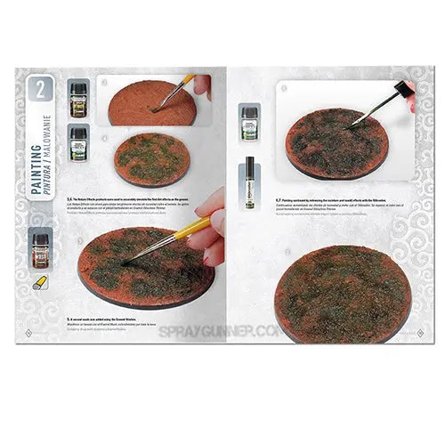With this book for Lush Jungle settings, it is possible to learn how to represent various types of terrain with abundant vegetation. With the versatile range of products included, you will be able to achieve a variety of effects. You can now easily imitate effects of mud and humidity commonly found in jungles, as well as tie your figures into the groundwork and environment. To add the final touch, some moss, plants, and leaves have been included to represent the vegetation typical of these unique landscape type.
